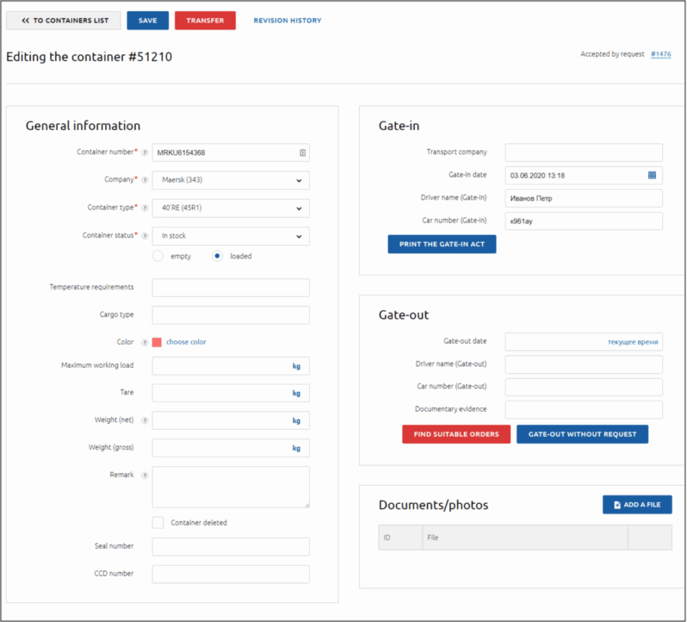 Gate-In / Gate-Out | Automates container entry and exit with EDI (CODECO), photo capture, and OCR |